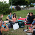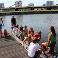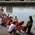 Come Together auf der Dachterrasse bei FluxFM, mit Mona Rübsamen, und anderen Fluxern... Das Team ist komplett und hat das Siegertreppchen mit der Nummer 1 bereits fest im Visier! ...beim 4. Dragonboats Media-Cup am 24.08. Oberbaumbrücke.